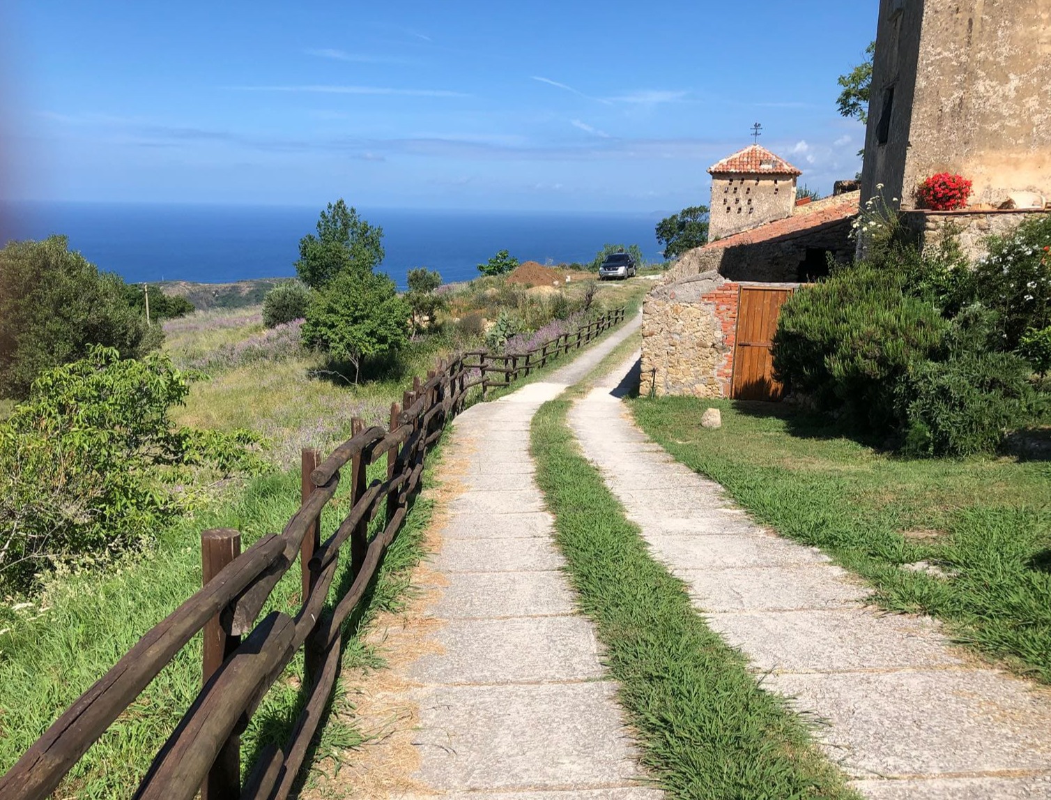 I curatissimi spazi esterni aprono la vista su un panorama a dir poco superbo: il Castello nacque nei decenni successivi alla distruzione di Molpa del 1464 da parte dei pirati saraceni, fin troppo chiara perciò la necessità difensiva della sua costruzione. Il Castello doveva avere la più ampia visuale verso il mare, per scrutarne i pericoli. Scomparsi i pericoli, oggi resta la monumentale bellezza di un luogo davvero unico, dove soggiornare significa trascorrere momenti che non si dimenticheranno facilmente.